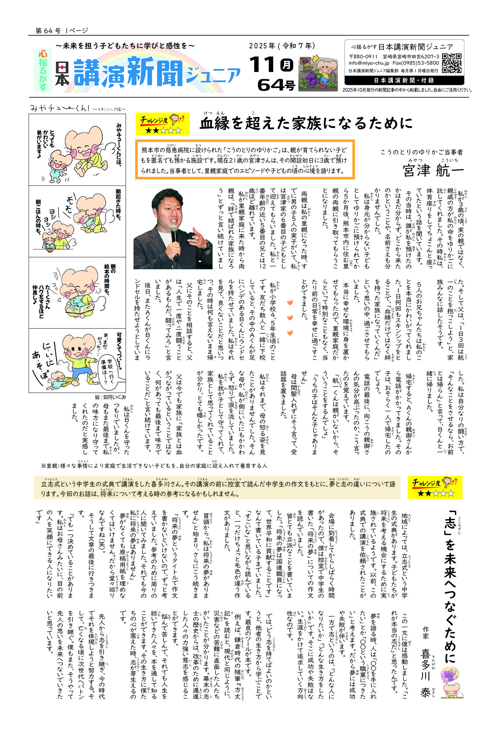 「日本講演新聞ジュニア」(PDF)を提供しています。